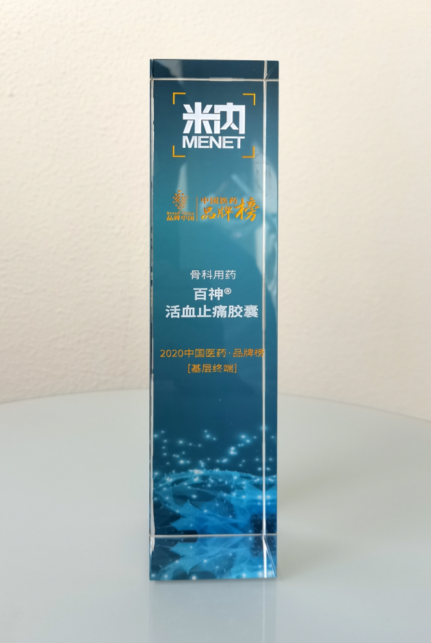 2020年12月9日,在广州举行的“2020全国医药经济信息发布会暨米房会年会”上,“2020中国医药品牌榜”正式对外发布。百神药业活血止痛胶囊荣登基层终端榜(骨科用药)。这是百神牌活血止痛胶囊继2016年荣登中国制药品牌榜·基层终端榜,2019年荣登中国医药品牌榜·基层终端榜后的第三次获奖。这是对百神牌活血止痛胶囊的崇高礼赞,是市场对百神牌活血止痛胶囊品牌实力的认可与肯定。