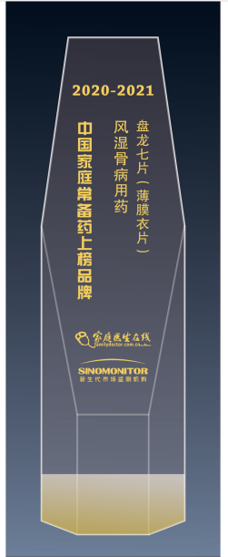 盘龙七片荣获“2020~2021年中国家庭常备药上榜品牌” “最佳网络人气榜单”双项大奖