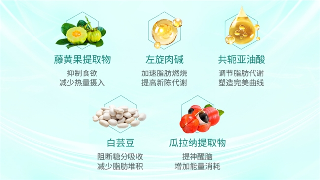 该产品侧重于藤黄果提取物,主打帮助减少进食欲望,通过调节摄入行为,为体重管理提供辅助,其成分设计考虑了易胖体质特性。